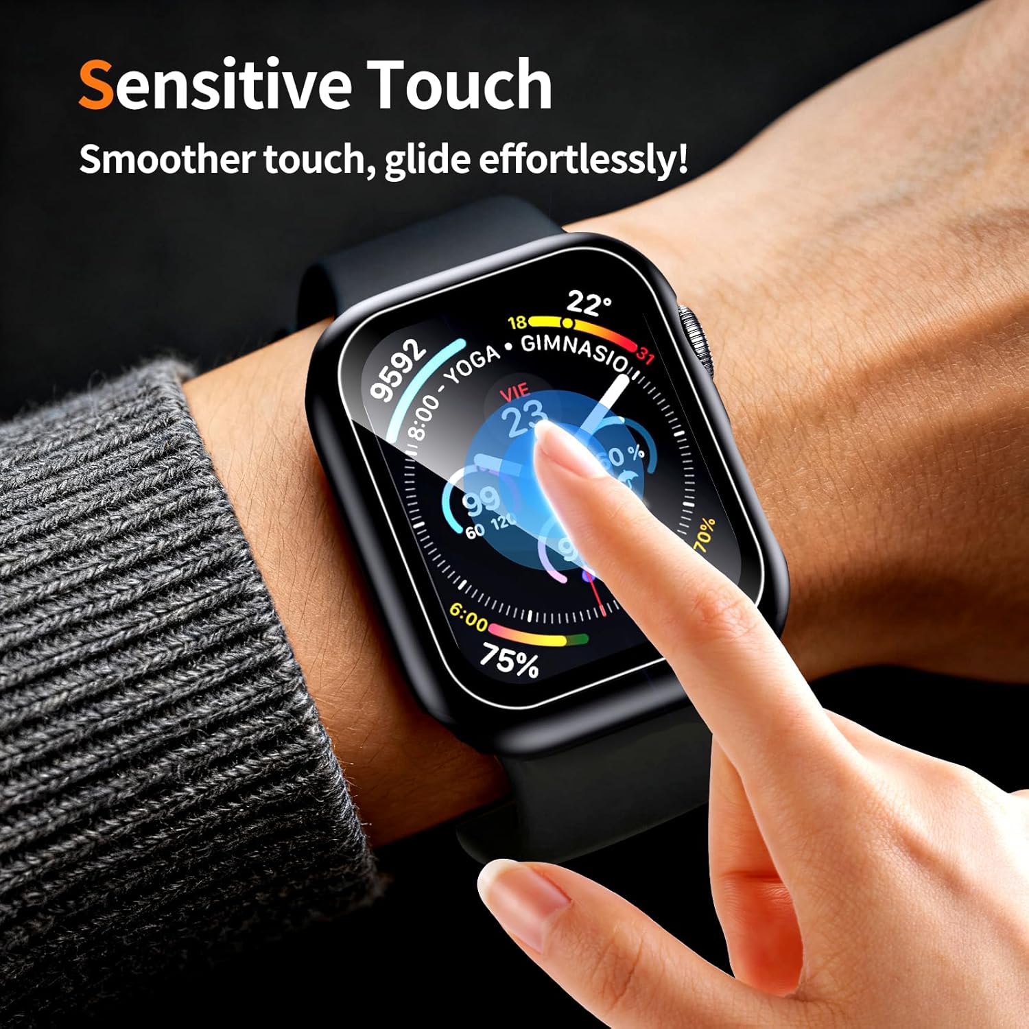 【Touch Sensitive】Our ultra-thin tempered glass screen protector provides unparalleled screen clarity and touch sensitivity. Not only it preserve your watch’s original color saturation while delivering full protection, but also highly touch-sensitive, enabling effortless interaction with your watch.