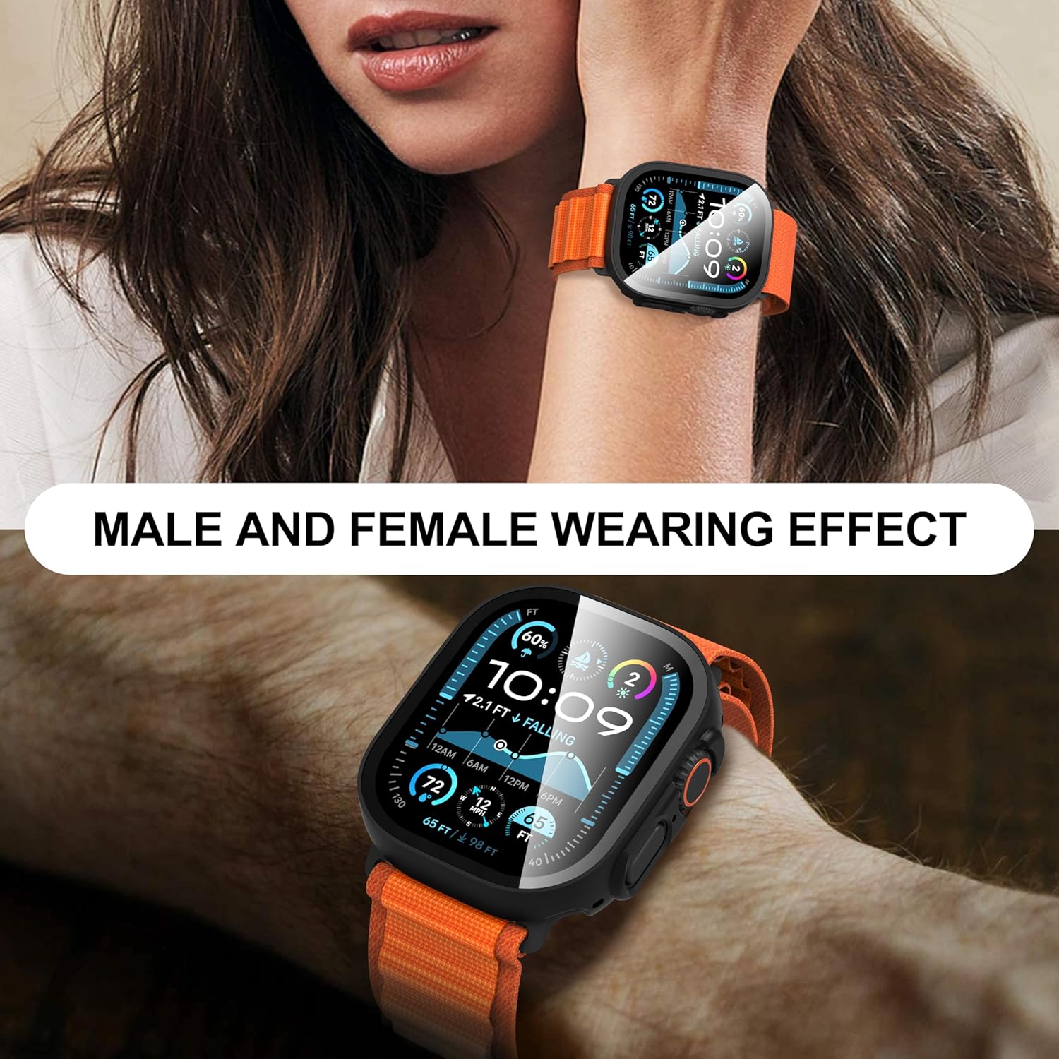 Compatible Model:Screen Protector Case for Apple Watch Ultra/Ultra 2/Ultra 3 49mm. Kit Contains Case*2, clean kit. Just peel off the soft film and you can easy to apply it.