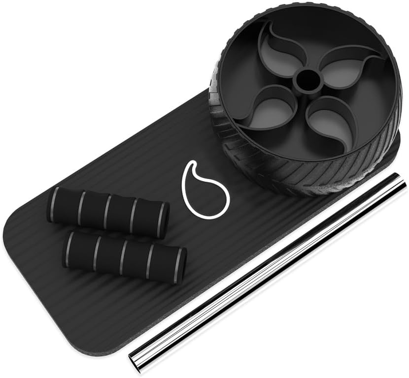 This ab roller is fantastic. It’s well-built and you feel completely confident in the solid structure of the steel bar and extra thick plastic wheel. I find the grips very comfortable and love the fact that they cover the entire handle. The mat doesn’t seem like much but it’s actually extremely effective and provides great cushion for my knees on hardwood.