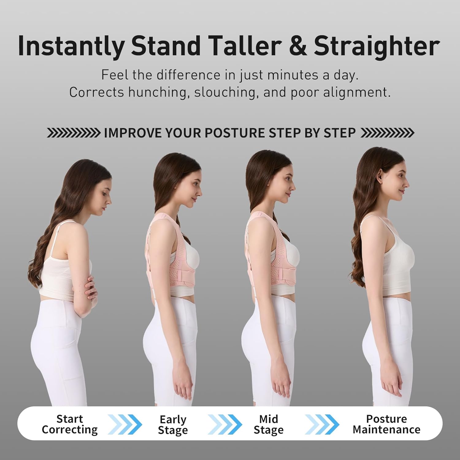 The video showcases the product in use.The video guides you through product setup.The video compares multiple products.The video shows the product being unpacked. Posture Corrector for Women Merchant Video