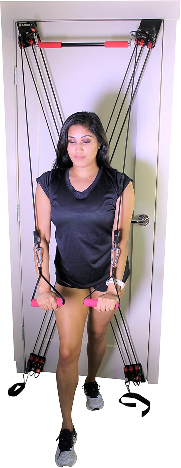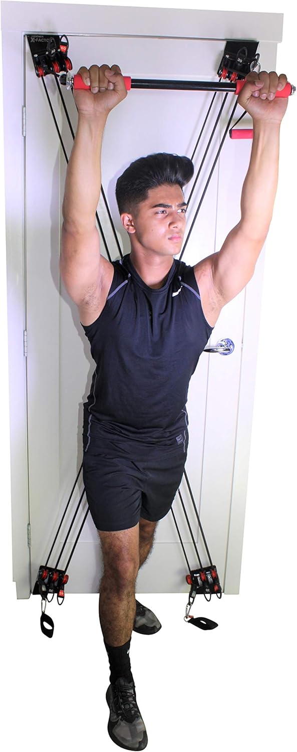 [Heavy Duty Resistance Power Cords] The X Factor Door Gym Complete Training Equipment is a Door-based home gym that is innovatively designed for working out your upper and lower body, that includes a variety of different workout combinations targeting every muscle, for the Ultimate Total Body Workout System! This Full Home Gym Exercise Equipment is designed workout your arms, chest, back, shoulders, abs, and legs!
